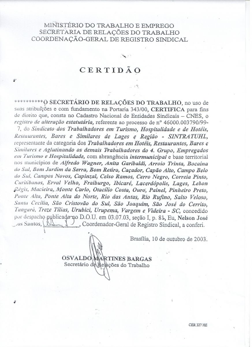 Em assembléia Geral dos Trabalhadores, foi decidido formar um Sindicato eclético, reformulando o estatuto da entidade, e em 10 de outubro de 2003 foi emitido a certidão do Ministério do Trabalho e Emprego com todos as alterações solicitadas. A nova denominação do Sindicato passou para, Sindicato dos Trabalhadores em Turismo, Hospitalidade e de Hotéis, Restaurantes Bares e Similares de Lages e Região, abrangendo aproximadamente 6.000 Trabalhadores, e representando 8 categorias: